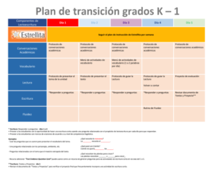 The resources below contain the DLI transitional plans to be used during August and September in preparation for the implementation of the new literacy Program (Benchmark Adelante). The new program is expected to be implemented in October.
