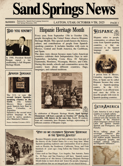 During Hispanic Heritage Month, many of our Utah Spanish Dual Language Immersion schools celebrated Hispanic culture through schoolwide events and activities. Below are a few examples of what some Spanish immersion schools organized: